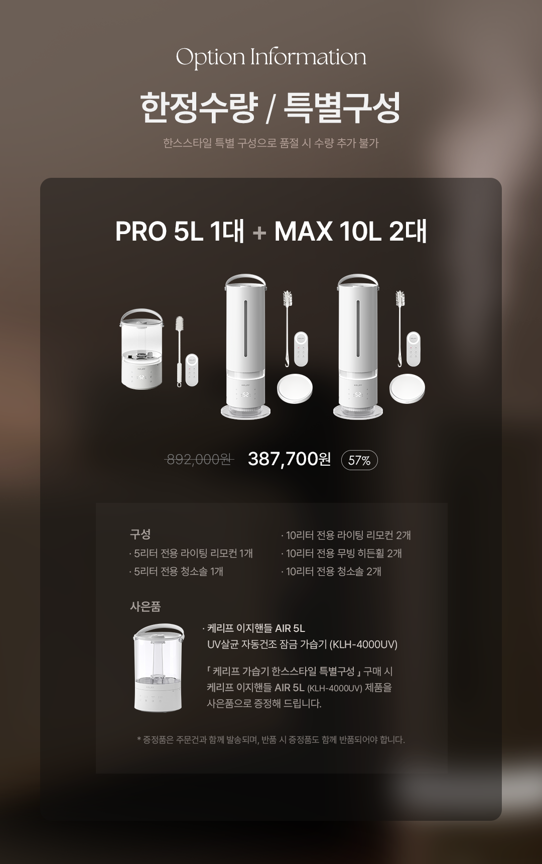 ±¸¸ÅÇϱ⠿ɼÇ1 ¿É¼Ç ¼±Åà PRO 5L 1´ë + MAX 10L 2´ë(ǰÀý) ¿É¼Ç2 ¿É¼Ç ¼±Åà 5¸®ÅÍ Àü¿ë ¶óÀÌÆÃ ¸®¸ðÄÁ 1°³ + 5¸®ÅÍ Àü¿ë û¼Ò¼Ö 1°³ + 10¸®ÅÍ Àü¿ë ¶óÀÌÆÃ ¸®¸ðÄÁ 2°³ + 10¸®ÅÍ Àü¿ë ¹«ºù È÷µçÈÙ 2°³ + 10¸®ÅÍ Àü¿ë û¼Ò¼Ö 2°³ ¿É¼Ç3 ¿É¼Ç ¼±Åà (Ãß°¡ÁõÁ¤)ÀÌÁöÇÚµé °¡½À±â AIR 5L ÃÑ »óǰ ±Ý¾× 0 ¿ø Àå¹Ù±¸´Ï ±¸¸ÅÇϱâ
